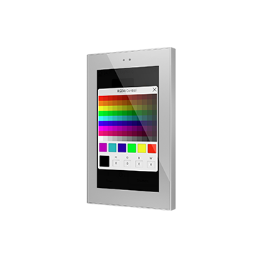 Color capacitive Touch panel with 5” display and a resolution of 480 x 854 pixels which allows a complete control of the installation thanks to its 12 fully customizable pages while maintaining a minimalist aesthetic. It has 2 analogue-digital inputs, internal temperature probe and 2 independent thermostats. It also incorporates a proximity sensor to detect activity for a quick start, as well as disabling the screensaver if configured. Moreover, it incorporates USB and Ethernet ports for program update.